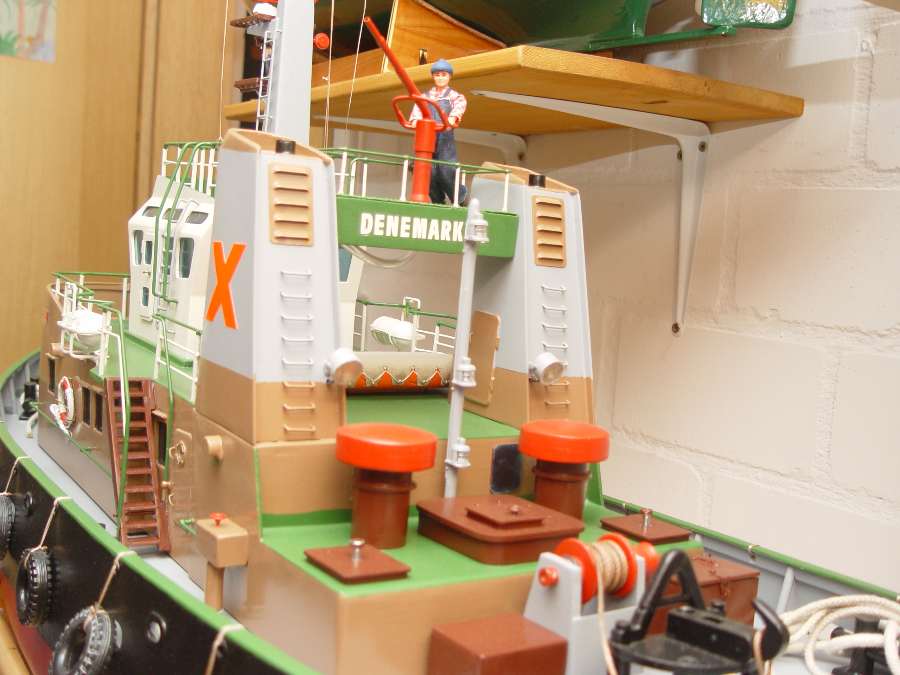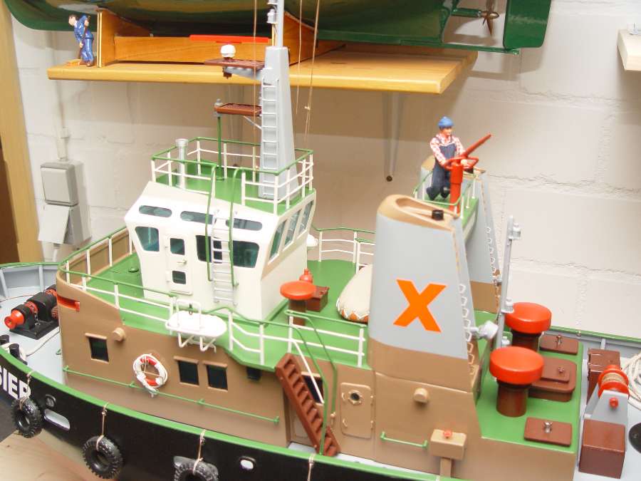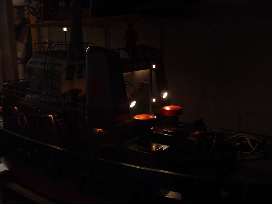 | Besonderheiten | 3 stufiger Beleuchtung siehe Bilder Radar drehbar + schaltbar Wasserspritze + schaltbar Doppelruder mit 2 Servos Funktionsfähige Winde+ schaltbar Super Soundmodul mit Nebelhorn und Windengeräusch |